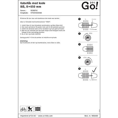 | Model | KABELLÅS MED KODE, BLÅ 8 X 650 MM |