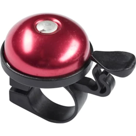Ringeklokke i rød metallic farve. Måler 37 mm i diameter.