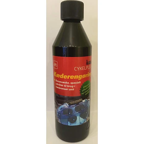 Kæderengøring. Effektiv affedtnings- og rengøringsmiddel, specielt udviklet til brug i kæderenseren. Hæd væsken ind i beholderen indtil den når svampen i kæderensen. Effektiv måde til rengørin af cykelkæden. Efter rens skal kæden smøres med cykelolie.