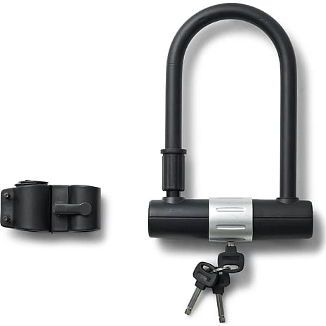 Bøjlelås velegnet til alle slags cykler. inkl. beslag til montering på stellet, så låsen medbringes nemt.