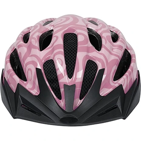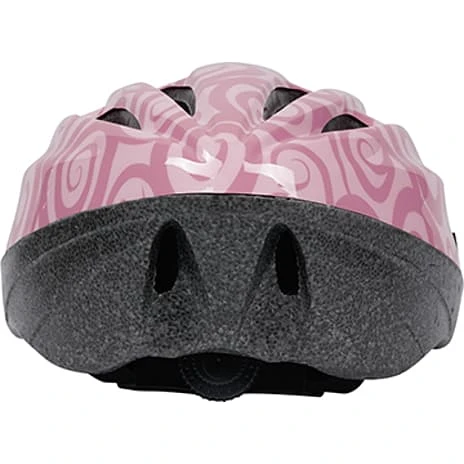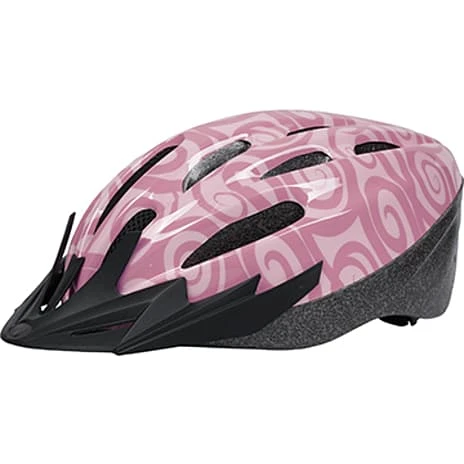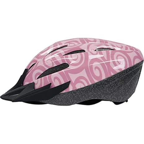 Urban cykelhjelm med rosa spiraler. Hjelmen er med regulerbare spænder i hver side samt bagpå hjelmen for hurtig og nem justering af hovedstørrelse. Hjelmen er godkendt efter Europæisk EN1078 standard.