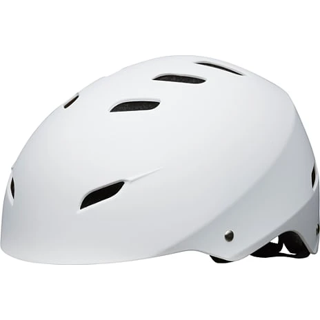Skaterhjelm i hvid med sorte straps, str. 55-61 cm. Hjelmen er forsynet med regulerbare spænder i hver side samt bagpå hjelmen for nem og hurtig justering af hovedstørrelse. Hjelmen er godkendt efter Europæisk EN1078 standard