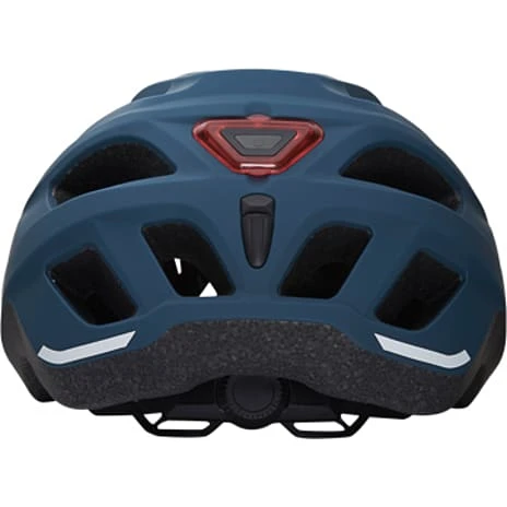 Cykelhjelm i mat petroleumsblå, str. 58-62 cm. Cykelhjelmen er en inmold hjelm med stødabsorberende EPS materiale. Hjelmen opfylder sikkerhedskravene for den Europæiske EN1078 standard. Hjelmens design gør, at den kan bruges som en all-around hjelm, og de 15 luftkanaler gør, at hjelmen giver masser af ventilation. Hjelmen har højt placeret LED lys for øget synlighed samt justeringssystem i nakken, som giver den optimale pasform. Hjelmen har justerbare sidespænder for nem justerbar pasform. Behagelig polstring i hjelmen, som kan tages af og vaskes.