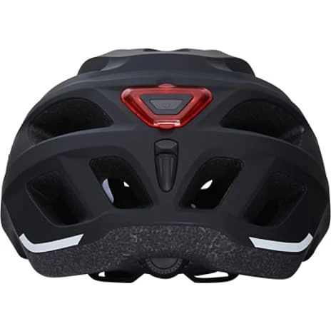 Cykelhjelm i mat sort, str. 54-58 cm. Cykelhjelmen er en inmold hjelm med stødabsorberende EPS materiale. Hjelmen opfylder sikkerhedskravene for den Europæiske EN1078 standard. Hjelmens design gør, at den kan bruges som en all-around hjelm, og de 15 luftkanaler gør, at hjelmen giver masser af ventilation. Hjelmen har højt placeret LED lys for øget synlighed samt justeringssystem i nakken, som giver den optimale pasform. Hjelmen har justerbare sidespænder for nem justerbar pasform. Behagelig polstring i hjelmen, som kan tages af og vaskes.