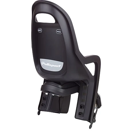 En af de farver, som Polisport har præsenteret, er denne store cykelstol med grå detaljer. Groovy stolen er beregnet til stelmontering på cykel, både med og uden bagagebærer. Stolen er komfortabel og kan flyttes 20 grader bagud for at opnå bedre hvileposition. Ryglænet kan lænes tilbage nemt og simpelt ved at tilgå sikkerhedsknappen og vælge en af de tre mulige positioner: 0º, 10º, 20º.