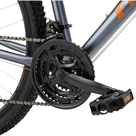 PUCH Furious er en prisvenlig mountainbike med alt, hvad der er brug for. Cyklen er monteret med en affjedret forgaffel, mekaniske skivebremser samt 21 udvendige gear, hvilket gør, at cyklen kan køre i alt slags terræn. Cyklen er primært grå, men med flotte sorte dekaler som giver et cool og råt udtryk. Dernæst kommer cyklen med 27,5” hjul, som gør, at den passer til mindre høje personer eller nybegyndere i skoven, da hjulstørrelsen er nemmere at manøvre rundt med. Udover udstyret, som cyklen leveres med, er der rig mulighed for at montere andet udstyr som f.eks. lås, flaskeholder eller lygter.