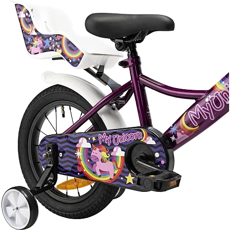 | Tilbehør inkluderet | Støttehjul, skærme, kædeskærm, dukkelstol |