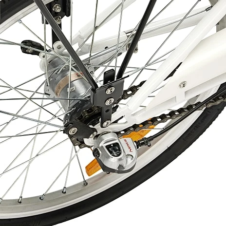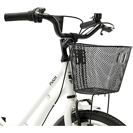 PUCH Sky 20” hvid er en rigtig fin pigecykel med det samme udstyr som en klassisk damecykel. Det vil sige, at cyklen er monteret med skærme, støttefod, kurv og bagagebærer. Derudover har cyklen 3 indvendige gear. Cyklen er perfekt som skole cykel eller til og fra fritidsaktiviteter. Kurven og bagagebærer gør, at tasker og lignende kan opbevares sikkert. Dernæst gør stellets udformning, at dit barn sidder komfortabelt på cyklen.