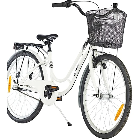 | Tilbehør inkluderet | Støtteben, ringeklokke, skærme, bagagebærer, frontkurv |