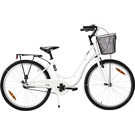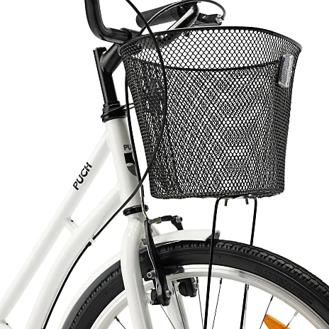 PUCH Sky 24” hvid er en rigtig fin pigecykel, med det samme udstyr som en klassisk damecykel. Det vil sige, at cyklen er monteret med skærme, støttefod, kurv og bagagebærer. Derudover har cyklen 3 indvendige gear. Cyklen er perfekt som skole cykel eller til og fra fritidsaktiviteter. Kurven og bagagebærer gør at tasker og lignende kan opbevares sikkert. Dernæst gør stellet udformning at dit barn sidder komfortabelt på cyklen.