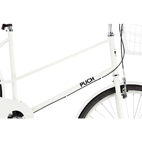PUCH Trendy er en fin damecykel med et retro-look, og en af de nyere modeller i PUCHs sortiment. Her er modellen i en elegant og klassisk sort farve og med 3 indvendige gear. Cyklen er perfekt som en cool bycykel, hvor det ekstra høje styr, tynde stålrør og cyklens øvrige udformning giver en særdeles behagelig køreoplevelse til at cruise rundt i byen.