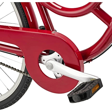 Cyklens stel og hjul er lavet i aluminium. Stellet er i en enkel men elegant rød farve. Derudover kommer cyklen med 7 indvendige Shimano-gear, bagagebærer, kurv og V-forbremse.