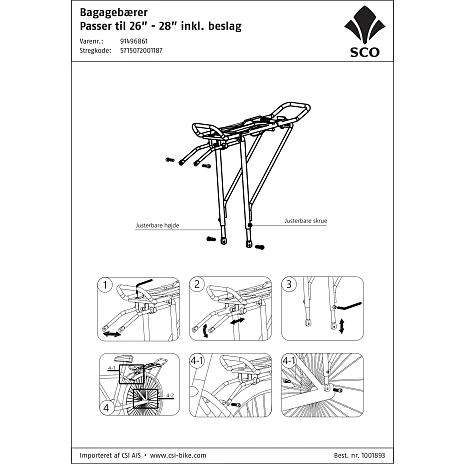 Bagagebærer i aluminium. Der medfølger monteringsbeslag. Passer til 26″-28″ cykler.