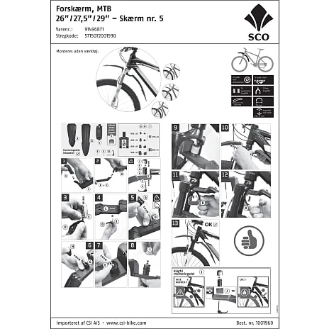 1.Standard beslag passer de fleste cykler