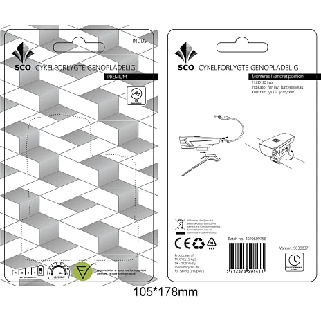1 LED genopladelig 30 Lux forlygte, der oplades med USB-kabel. Forlygten kan nemt monteres eller afmonteres på medfølgende beslag, som fastmonteres foran på styret. Lygten kan lyse med konstant lys eller blinke. Er testet hos ForbrugerLaboratoriet i Danmark.