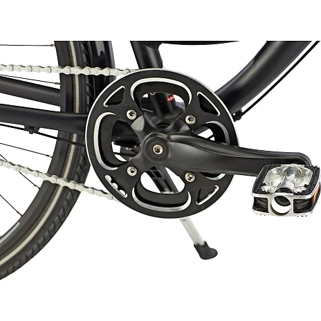 Cyklen er lavet med letvægtsskærme og kvalitetspedaler med skridsikker overflade samt en støttefod i høj kvalitet. Modellen har Atran Velo bagagebærer i høj kvalitet, som giver dig gode opbevaringsmuligheder.