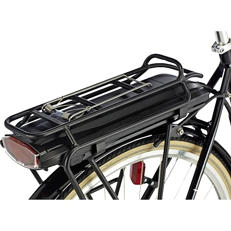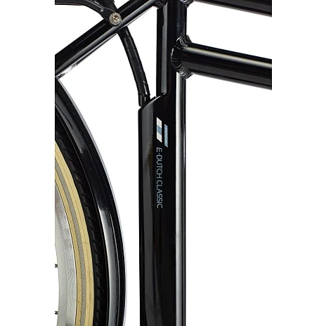 SCO Premium E-Dutch har et kraftigt 11AH (396 Wh) batteri, som er monteret godt og sikkert under bagagebæreren, hvor det nemt kan tages af og på. Derudover er cyklen monteret med en forhjulsmotor samt fastmonteret lys både for og bag.