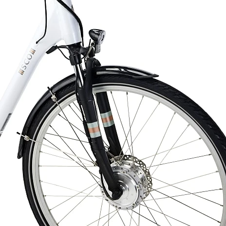 SCO Premium E-Patron center er udstyret med en forhjulsmotor samt et kraftigt 13AH (468 Wh) batteri, som kan hjælpe dig op til 110 km.*