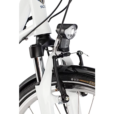 Cyklen har en halvlukket kædeskærm, der er malet i samme farve som cyklen, hvilket giver et gennemført udtryk til cyklen. SCO Premium E-shopper er et velegnet transportmiddel i hverdagen, og kan indgå både som et effektivt køretøj til arbejde eller andre praktiske gøremål i hverdagen, hvor motoren hjælper dig på vej.