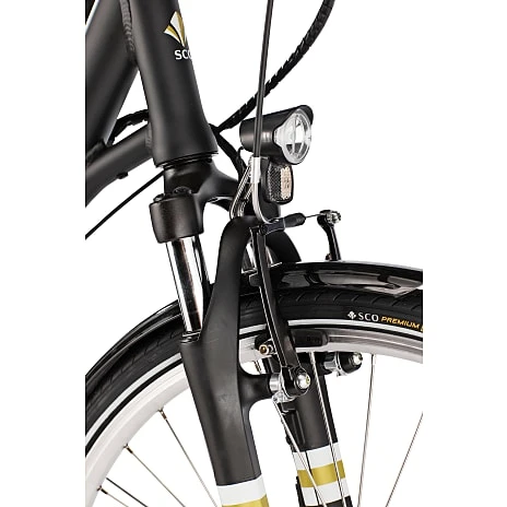 Cyklen har en halvlukket kædeskærm, der er malet i samme farve som cyklen, hvilket giver et gennemført udtryk til cyklen. SCO Premium E-shopper er et velegnet transportmiddel i hverdagen, og kan indgå både som et effektivt køretøj til arbejde eller andre praktiske gøremål i hverdagen, hvor motoren hjælper dig på vej.