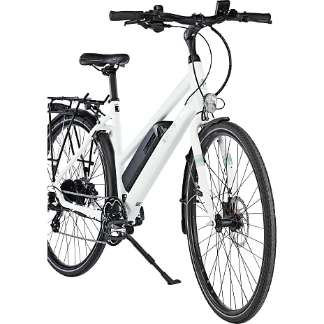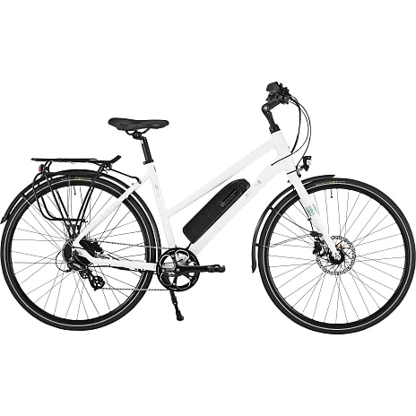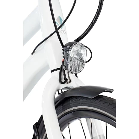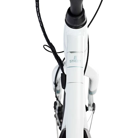 SCO Premium E-street dame er en prisstærk cykel i et sporty udtryk. SCO Premium E-Street har et klassisk city-bike stel, hvor du sidder let foroverbøjet hvilket giver en højere fart. Herudover har cyklen et downtube batteri på 10,4AH (374,4 Wh), som er placeret midt på cyklen for bedre vægtfordeling, og med hjælp op til 80 km*. Cyklen har en justerbar frempind så du kan regulere hvor højt du ønsker styret skal være. Cyklen er køreklar da den allerede har påmonteret for- og baglygter.