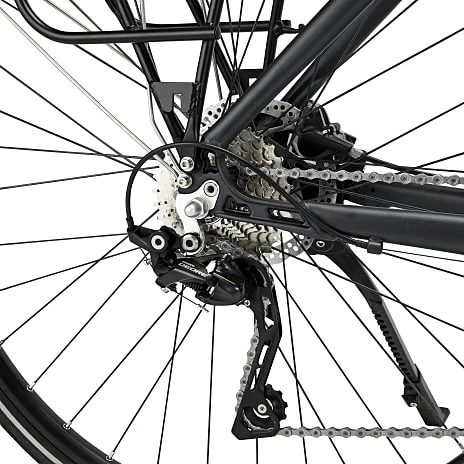 Cyklen er køreklar, da den allerede har påmonteret for- og baglygter. SCO Premium E-Trekking har Shimano Deore 10 udvendige gear, der giver lette og behagelige skift mellem gearene. SCO Premium E-Trekking er med centermotor, som er placeret midt på cyklen, hvilket giver en fremragende stabilitet i alle former for terræn. Samtidig medvirker en centermotor også til en mere komfortabel tyngde på cyklen, da vægten er placeret på midten af cyklen. Motoren er bygget til den aktive person, som stadig gerne vil bruge lidt muskler og trækkraft. Den er udstyret med en Torque sensor, som er konstrueret således, at den yder optimalt, hvis cyklisten selv er i stand til at assistere og supplere motoren i forbindelse med acceleration, men samtidig giver den også en blid igangsætning af motorhjælpen, hvilket øger komforten og køreglæden.