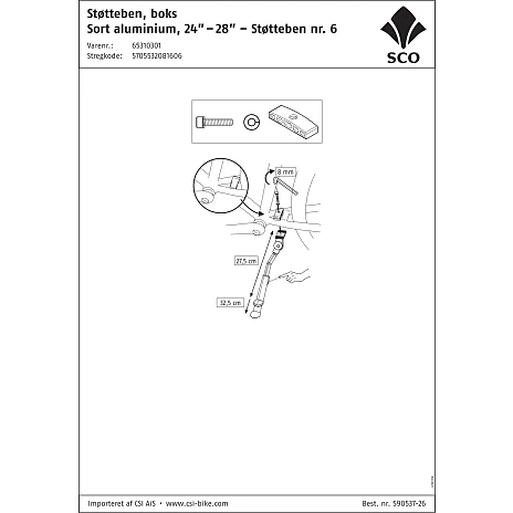 Støttebenet monteres på stellet ved krankboksen. Hvis du er i tvivl omkring, hvordan det skal gøres, så se denne video, hvor en professionel cykelmekaniker fortæller og viser, hvordan man